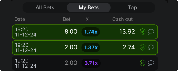 • The most risk-free multipliers are 1.2–1.4 x. You can continue playing and wait for 5x multipliers if you are ready to lose.